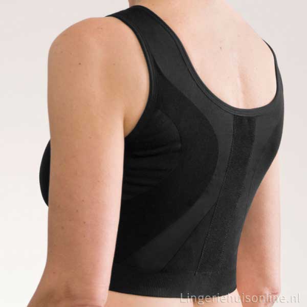 - Anatomically shaped with strong, stretchy material for an optimal fit and ring-shaped compression of the upper part of the breast, except on the cup