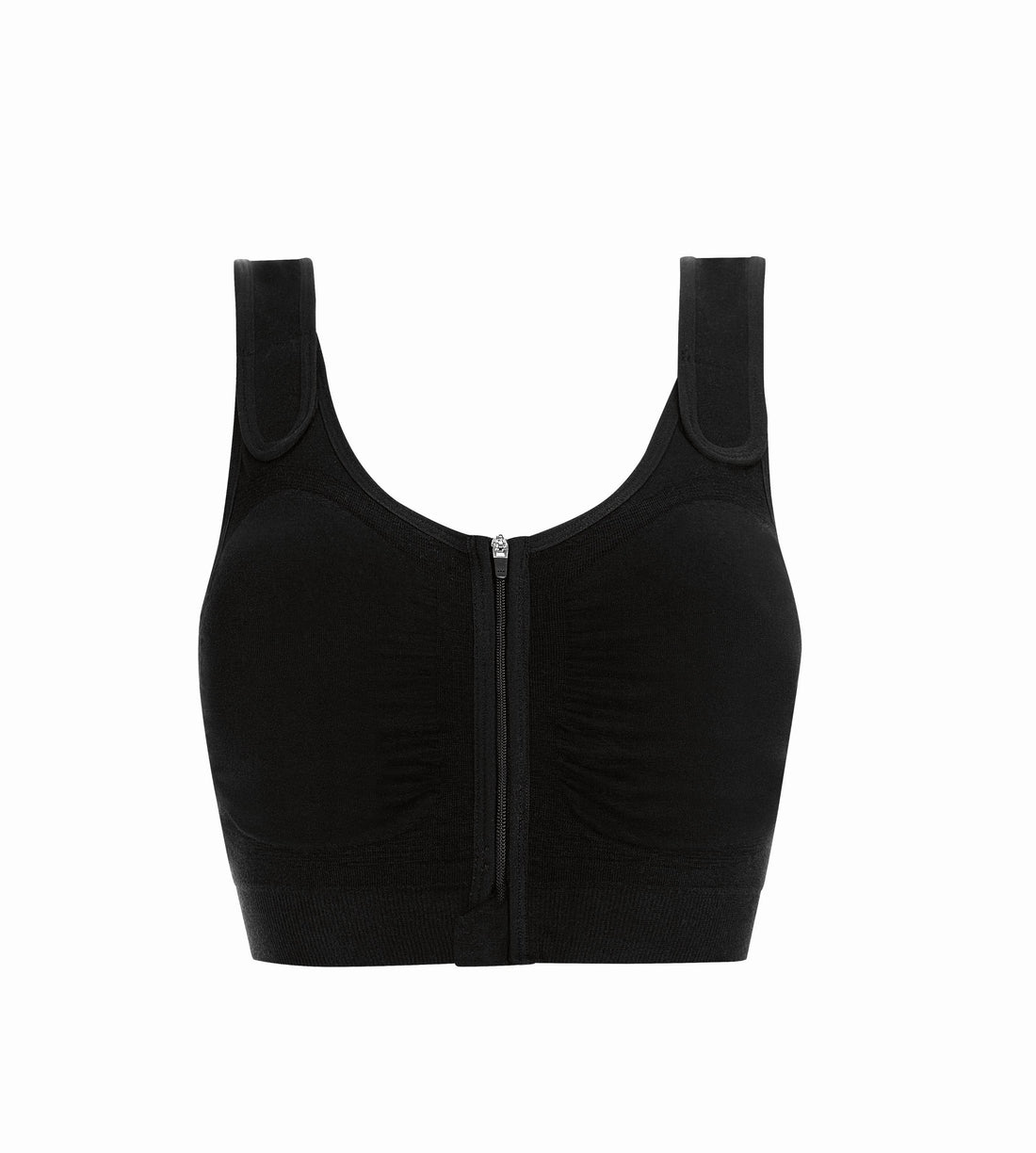 - Front zipper for quick access to the operated area, with additional hook and eye closure under the zipper for easier closing of the bra