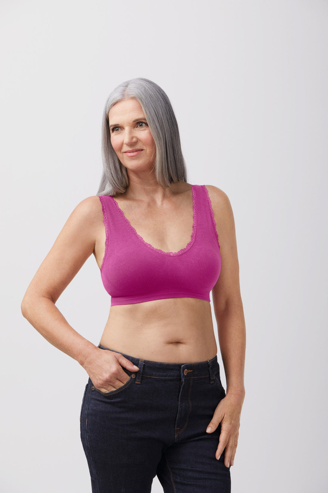 This seamless bra with pockets is made with a high cotton content. It has no uncomfortable seams and features removable, molded cups.