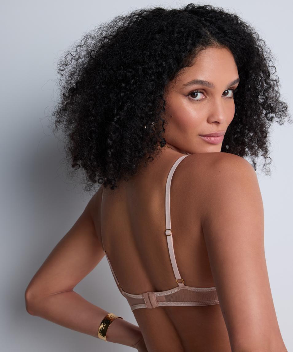 Modern and comfortable, the Sound of Heart triangle underwire bra features elegant embroidery with shimmering Lurex threads that extend all the way to the shoulders. The alternating of sheer and shimmering fabrics creates a daring look, finished with a gold charm between the cups to draw attention to the ultra-sexy plunging neckline. The Sound of Heart triangle underwire bra’s signature features: Embroidered trim, band, and panel crafted in France Intricate, multi-colored embroidery enhanced by the sparkle of Lurex thread Modern straight edges Hammered gold charm with coordinating rhinestones A combination of opulent, sophisticated colors.