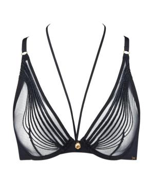 The Sumptuous Waves triangle underwire bra features fabric that extends to the top of the neckline and a soft knit back. It has a comfortable shape and is available up to an F cup. The wavy embroidery reflects the natural curves of the bust. It accentuates the depth of the décolleté, accentuated by a sexy, detachable neck strap.
