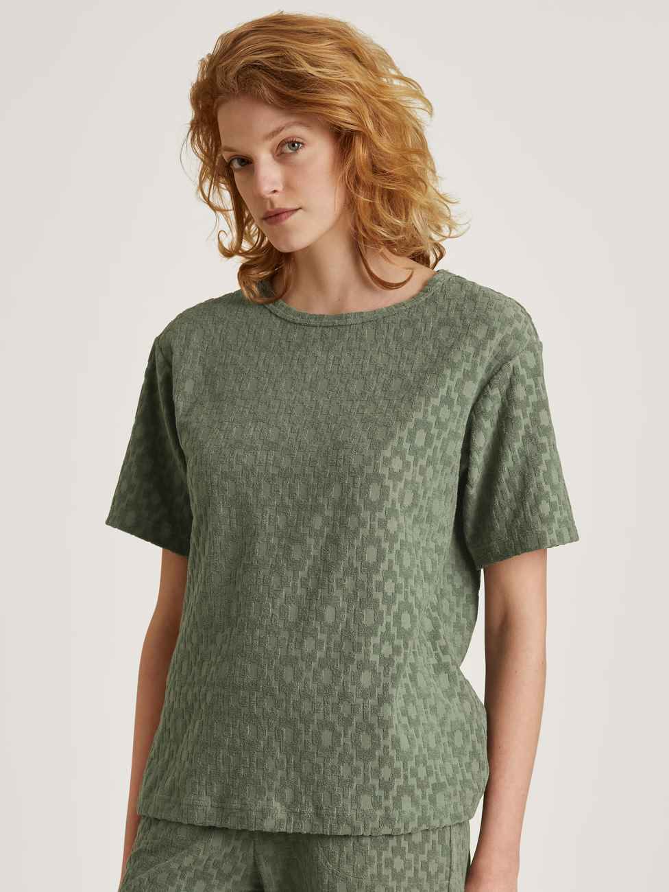 The short-sleeved shirt from CALIDA's LOUNGE HEALING series is the perfect basic for sofa and beach looks.