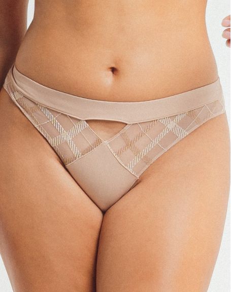The Louisa Bracq briefs from the Albanach line offer a contemporary interpretation of the 17th-century Tartan motif, with an imitation of neoclassical metal weaving.