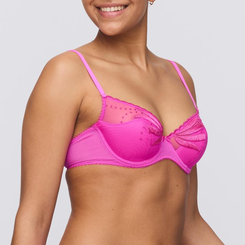 Sexy cleavage guaranteed thanks to this underwire bra with a deep plunge. The half-padded cups are decorated with an abstract leaf motif. A timeless design making a comeback from the eighties.