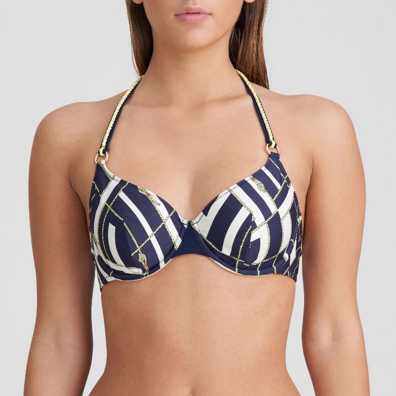 This full cup bikini top combines the classy navy style with a modern twist and Marie Jo's trusted fit.