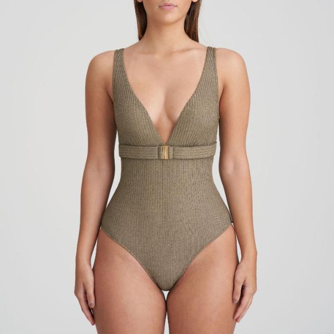 Tinjis Plunge Swimsuit Without Underwire Golden Olive