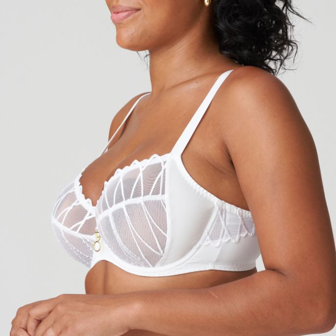 A truly sexy, full-cup bra with a comfortable three-piece design. The tulle cups are adorned with shimmering satin-look embroidery featuring a graphic pattern. White is a lingerie essential with a minimalist look: the perfect match for these sexy and sleek designs.