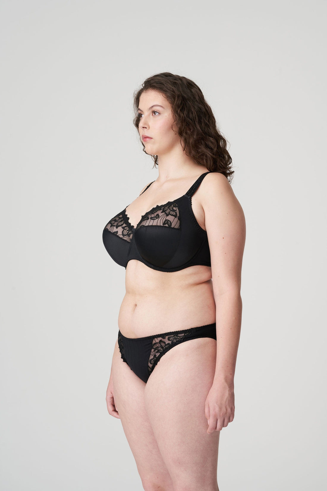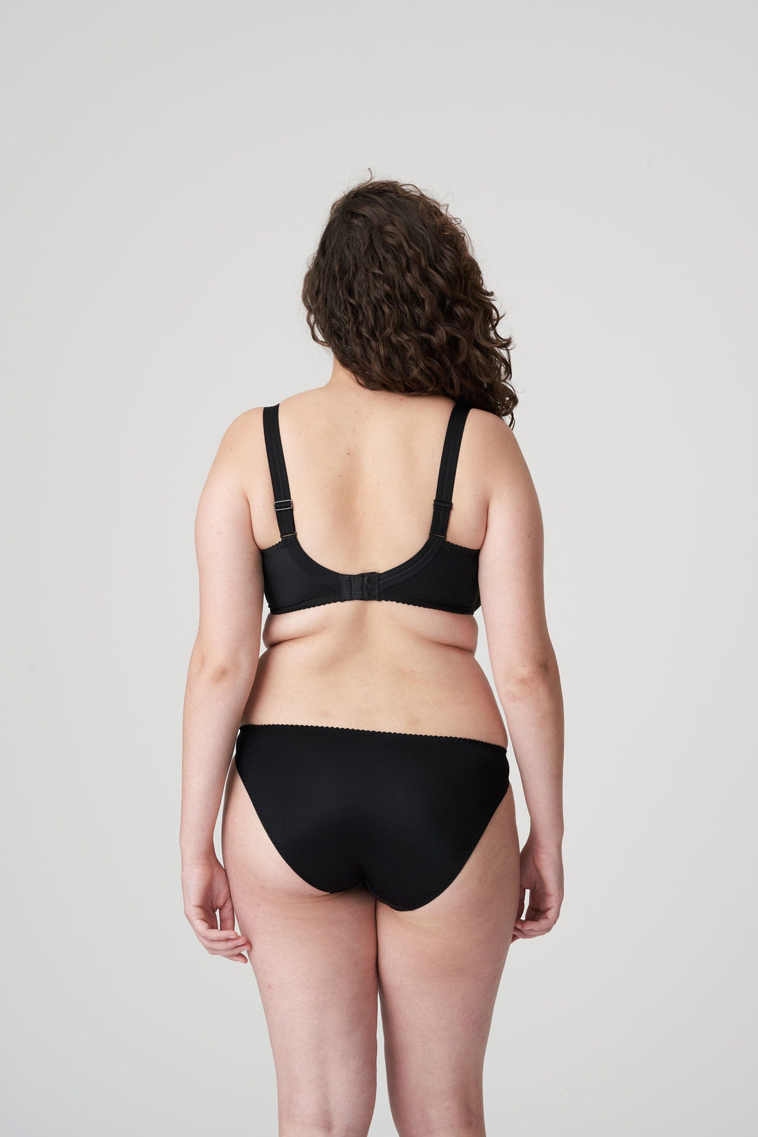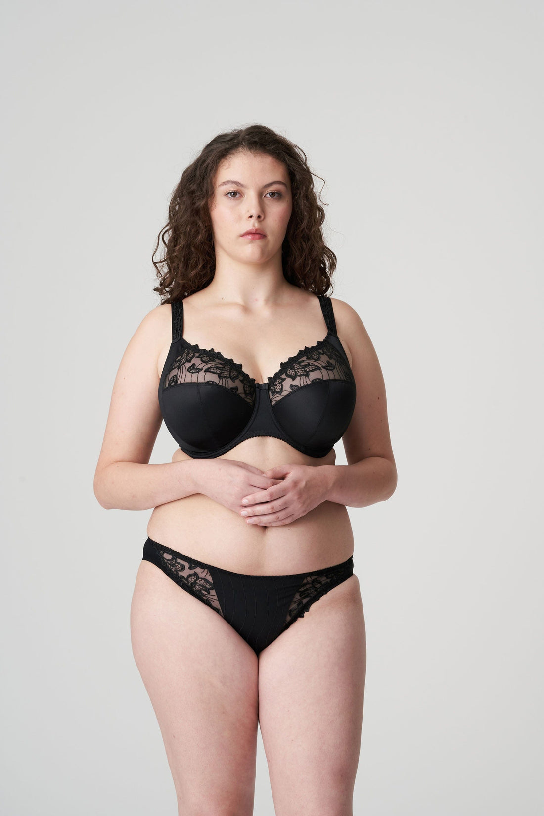 This three-piece underwire bra has a legendary fit and an elegant, airy look. It features subtle, shimmering embroidery on the cups and straps. Mysterious, sexy, and powerful: black is all in one.