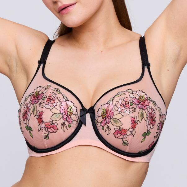 Non-padded balconette bra with a vertical seam and a low-cut silhouette. The cups are doubled for comfortable support and lift. A soft, summery peach shade.