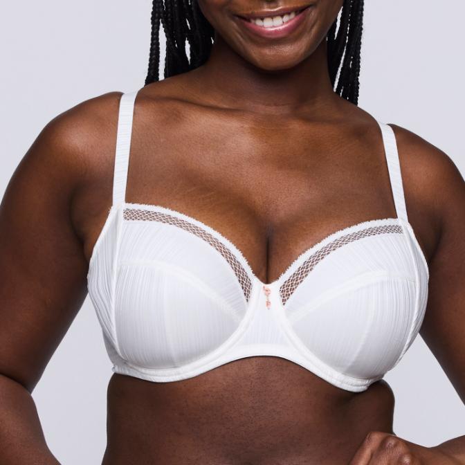 Full-cup bra with an underwire and firm lining. This style provides full coverage.