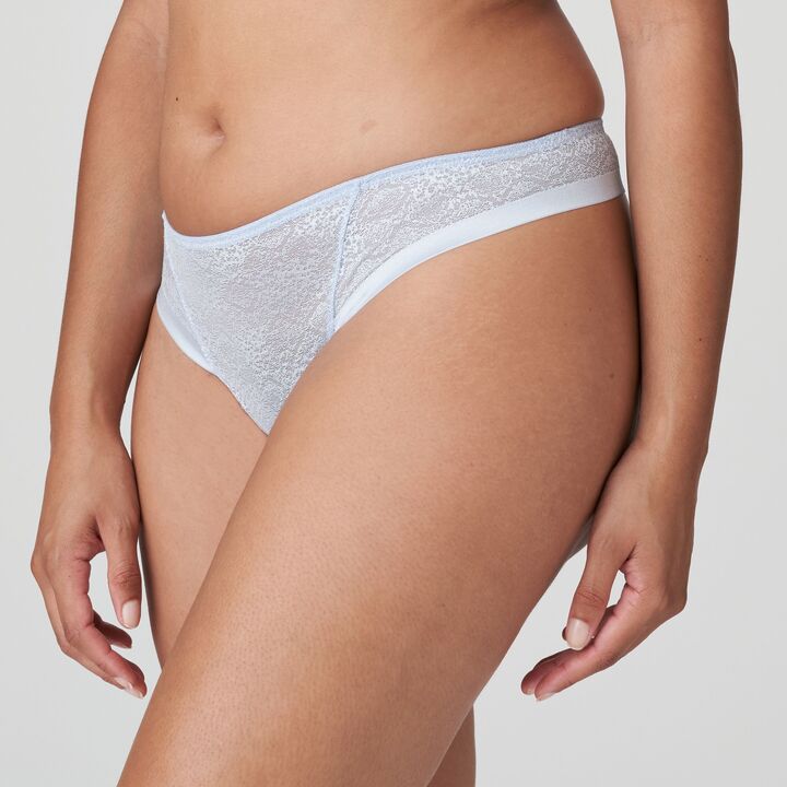 Sexy stretch lace thong with a subtle sheen. With a fitted, smooth finish at the leg. Pale blue catches the light and makes both light and dark skin tones radiate.