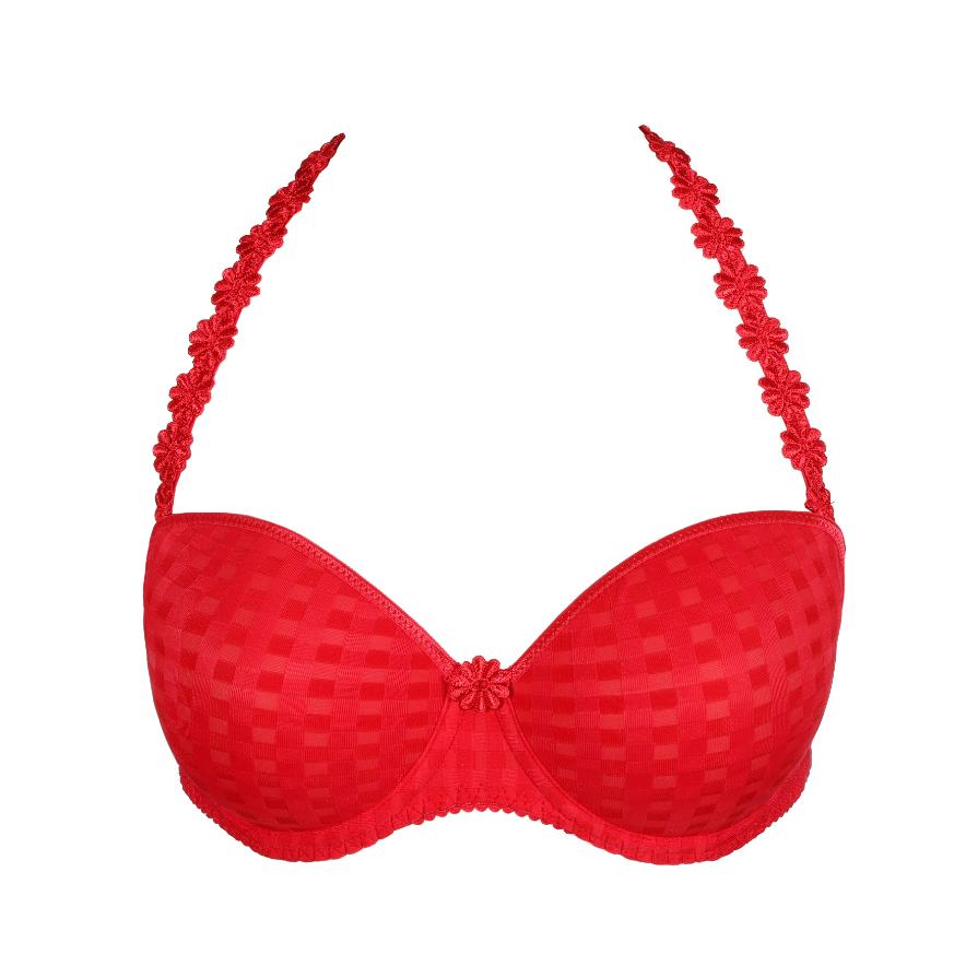 Soutien-gorge sans bretelles à la forme plus horizontale. Le dos droit est doté d'une bande en silicone qui offre un maintien supplémentaire lorsqu'il est porté sans bretelles. Le rouge à lèvres Scarlet est un incontournable de votre tiroir à lingerie. Ne serait-ce que parce que le rouge est totalement invisible sous le blanc !