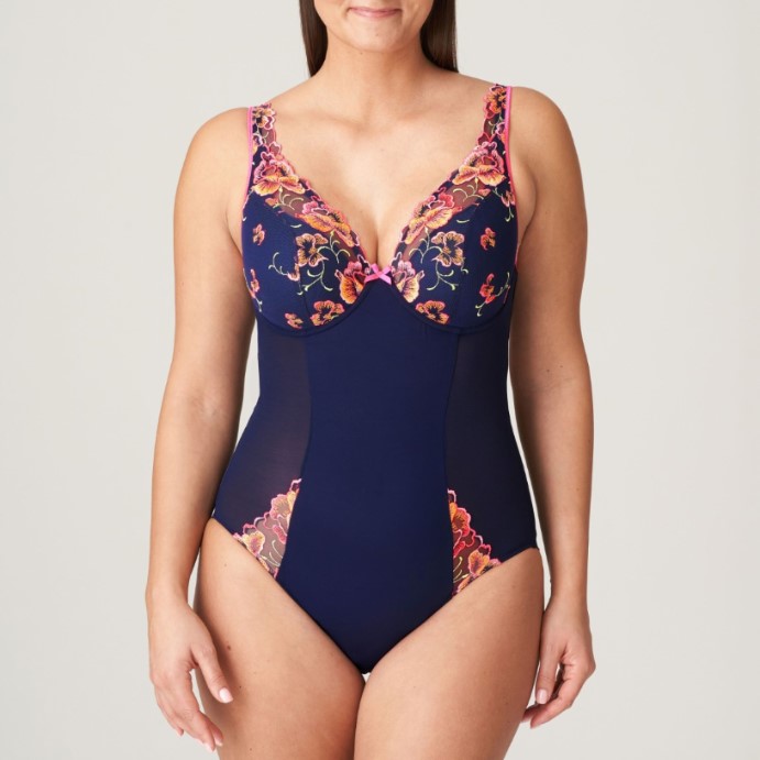 Body séduisant avec un décolleté profond, encadré de fines fleurs brodées et un dos nu sexy.
