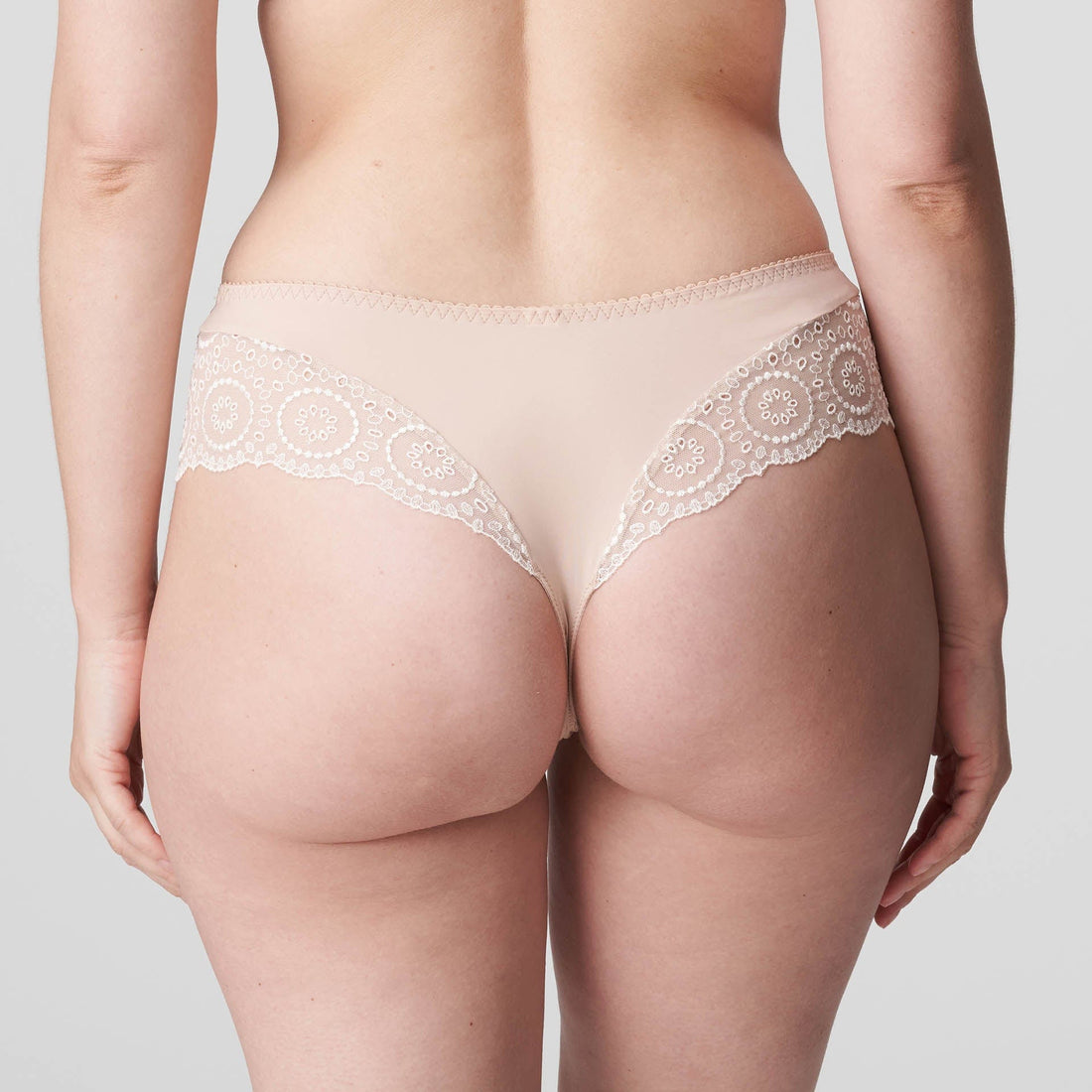 DANSséduisant String de Luxe orné d'une fine broderie anglaise. Caffé Latte est un neutre chic et chaleureux.