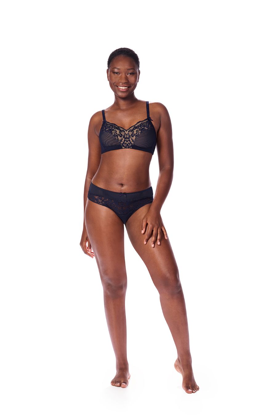 De Kyra beha zonder beugel biedt zowel vrouwelijkheid als comfort in één voortreffelijk ontwerp. Het kant en het materiaal met een gestreepte look voegen een vleugje elegantie toe. De hoesjes, gemaakt van ademend, temperatuurbalancerend microvezelmateriaal, zorgen de hele dag voor comfort. Verstelbare elastische bandjes en extra zijvoering met superzachte baleinen zorgen voor een mooie vorm en ondersteuning. Met een hoog uitgesneden rug die oneffenheden verbergt en een zacht gewatteerde rugsluiting biedt deze beha optimaal draagcomfort en stijl voor zelfverzekerde dagen.