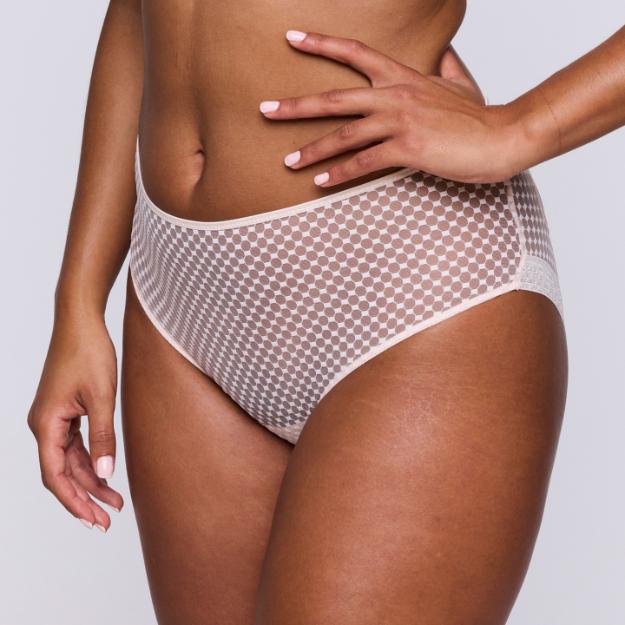 Héél sexy en toch comfortabel: deze high-waist hotpants bestaat volledig uit transparante bolletjestule. De cut-out op de rug heeft de vorm van een vlinder. Stylish!