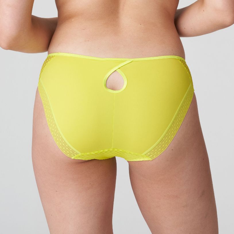 Rioslip in sexy bolletjestule, met zachte microvezel op de achterkant. Een stylish cut-out op de rug maakt je look compleet.