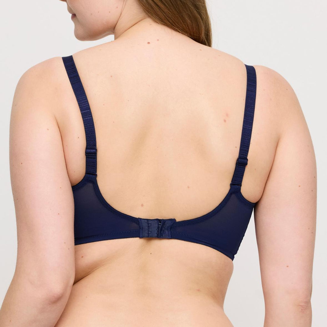 Verleidelijke balconette bh met een sporty chic stijl. Hij bestaat volledig uit een glad en glanzend satijnstofje met een lijntjesprint, dat doorloopt in de straps. Een juweeltje in roségoud middenvoor maakt je look compleet.