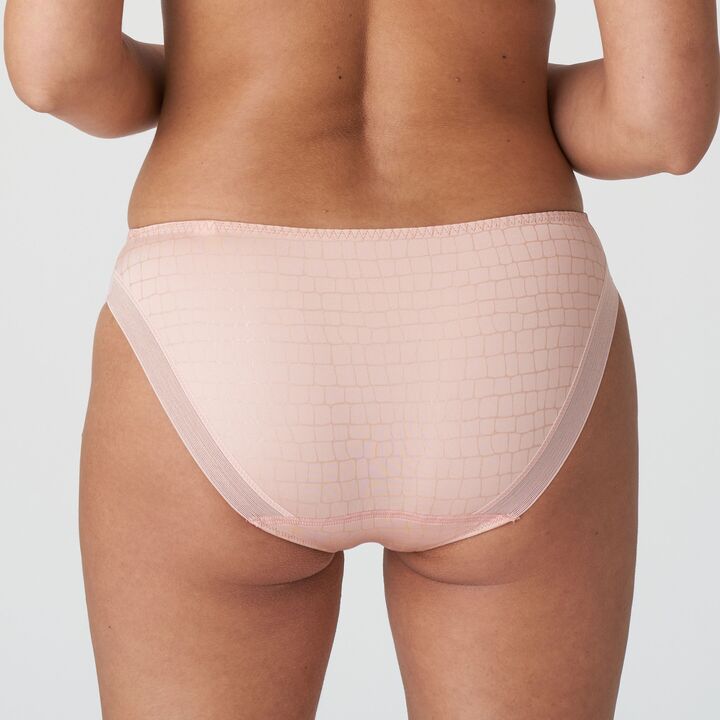 Glad rioslipje van glanzende satijnstof met een crocoprint. Speelse tule aan de benen maakt je look af.