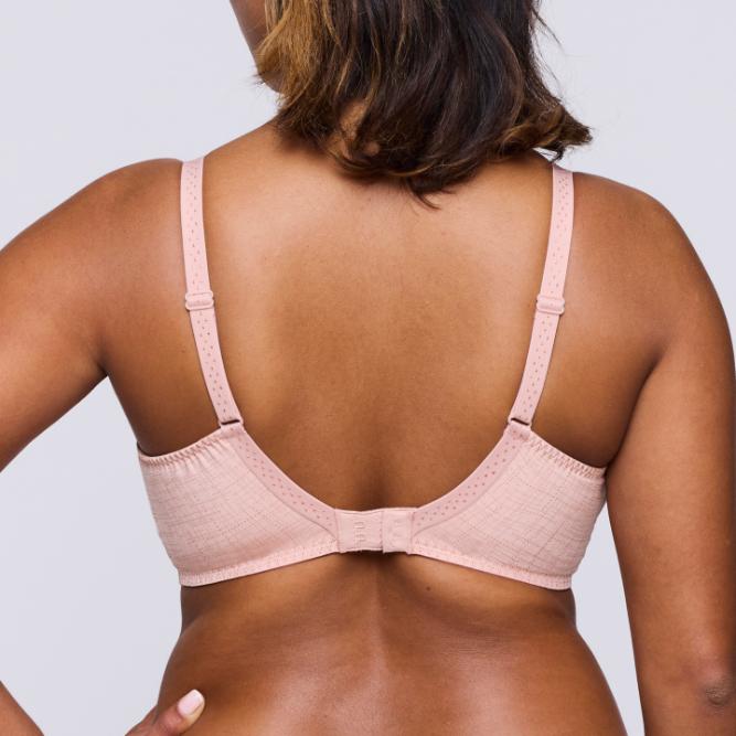 Voorgevormde balconette bh met mousse cups en een horizontale belijning. Roze neutral met gouden shine.