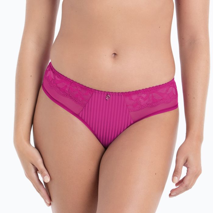 De Sita shorty pakt het dessin van beha Sita op: fijne, all-over elastische strepen worden aan de zijkant afgewerkt met elastisch kant en transparante tule.